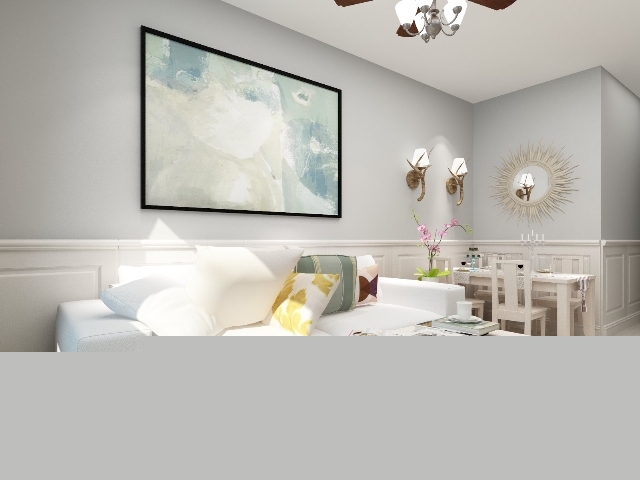 客廳內(nèi)采用了墻裙的設(shè)計(jì),高端品位一下子就出來(lái)了