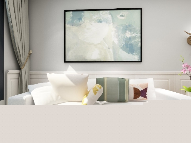 沙發(fā)背景采用了一幅大的抽象畫(huà),顯得空間很整體,一點(diǎn)也不瑣碎