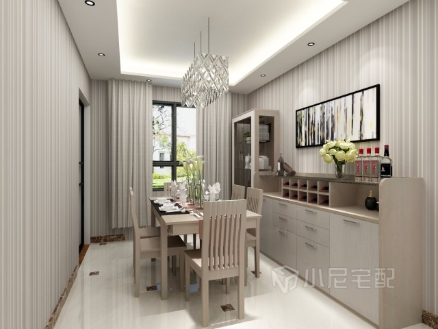 餐廳位置布置豐富的酒柜和餐邊柜,增加儲物功