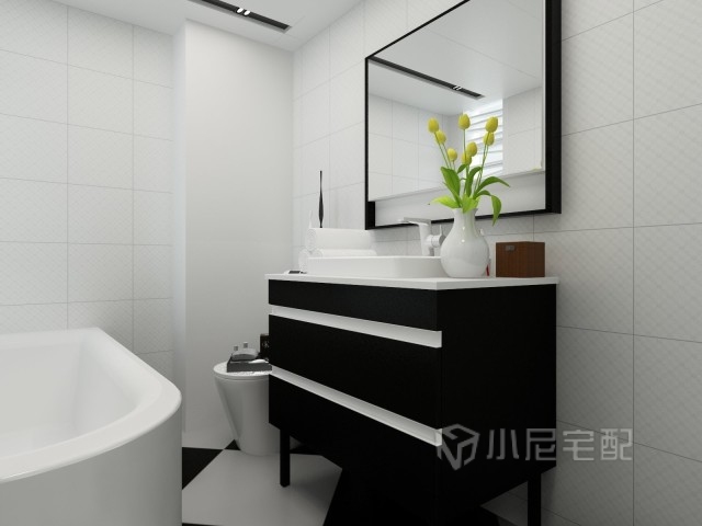 衛(wèi)生間采用黑白主色拉開層次關(guān)系