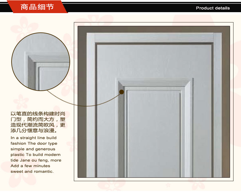 | 友情提示 | 親愛的客戶,我們的門扇標(biāo)準(zhǔn)尺寸是高度1900-2100mm,寬度700-900mm,厚度40±1mm;如有尺寸超高、超寬、超厚,請與 客服聯(lián)系 。 |