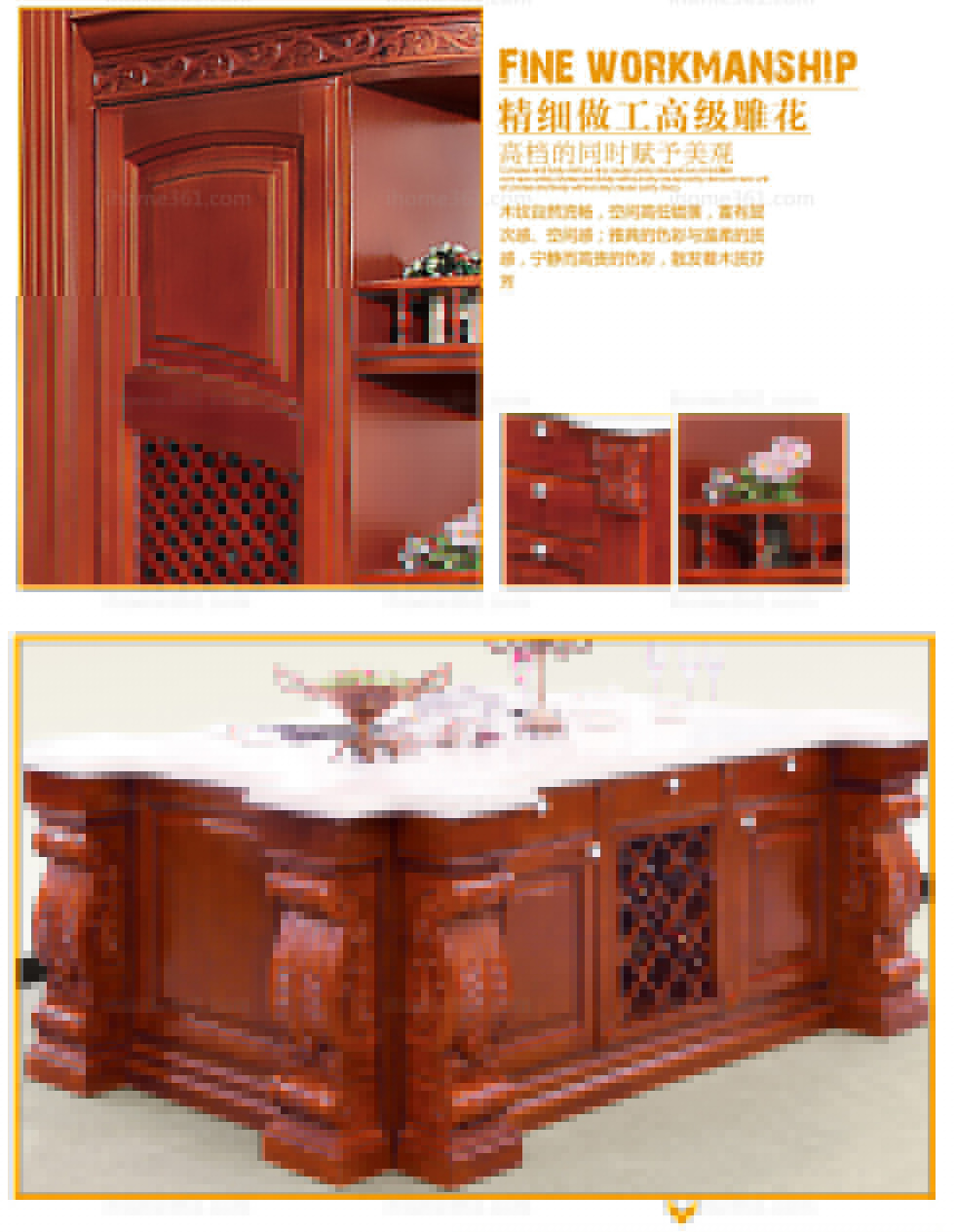 滿目的櫻紅、動人的紋理、仿古的造型、深厚的底蘊,使皇室家族的高雅與高貴體現(xiàn)的淋漓盡致; 大氣沉穩(wěn)的設(shè)計與精選的天然材料相得益彰,造就了如此完美的藝術(shù)作品。