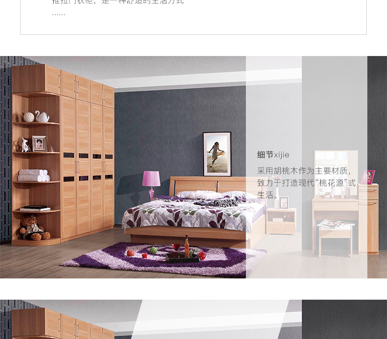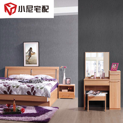 雙人床*1件、衣柜*1件、床頭柜*2件、床墊*1件、梳妝臺(tái)*1件、梳妝登*1件