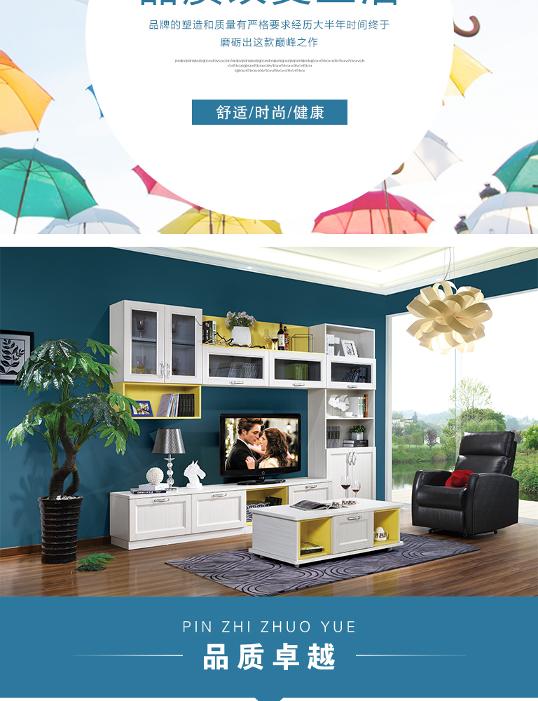 此空間為蘇香桐套檸檬黃的定制電視柜,茶幾