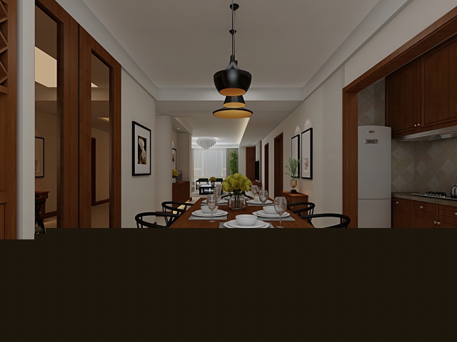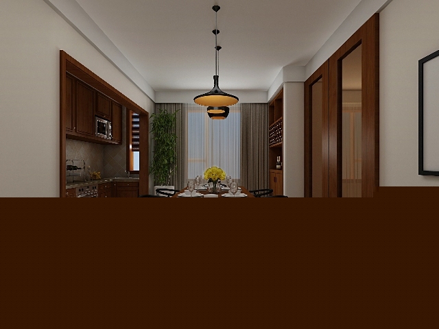 餐桌椅和燈與木色的恰當(dāng)?shù)娜诤?/pre>