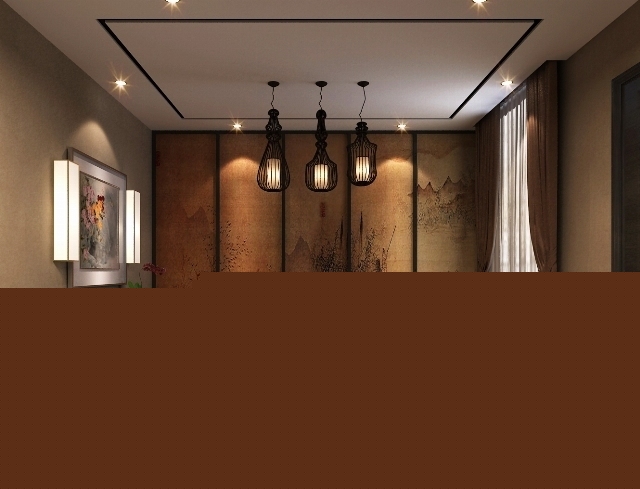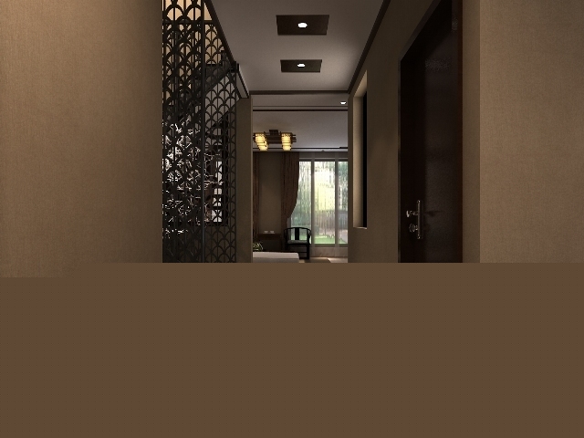 走廊是起連接空間作用的空間,本方案中,以現(xiàn)代的黑色材料制作出帶有古典風(fēng)味的隔斷,現(xiàn)代的裝飾品給空間帶來(lái)新鮮的感覺,兩者的結(jié)合給人帶來(lái)一種別樣的風(fēng)情。