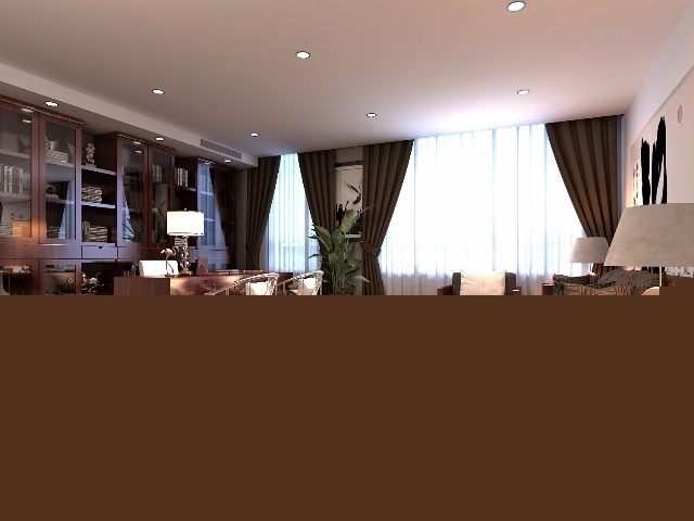 書房是學(xué)習(xí)工作的場(chǎng)所,純粹的中式風(fēng)格在書房中會(huì)是以中稍微有些壓抑的純木色,但在本方案中,以中式風(fēng)格為主的同時(shí)加入了現(xiàn)代的元素,在嚴(yán)肅的空間中帶著幾分的活潑?,F(xiàn)代風(fēng)格的座椅給沉悶的空間帶來(lái)一絲的不安于現(xiàn)狀,幾欲脫離出來(lái),但這樣的結(jié)合也使得書房的嚴(yán)肅、安靜,擁有了一絲活躍。