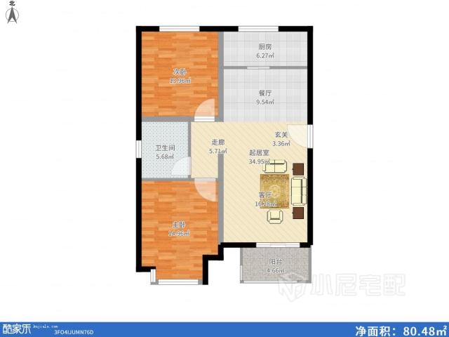 本方案為90后小兩口而生,由曲線和非對(duì)稱線條構(gòu)成,如花梗、花蕾、以及自然界各種優(yōu)美、波狀的形體圖案等,體現(xiàn)在背景墻,地磚,壁紙等裝飾上。線條有的柔美雅致,有的遒勁而富于節(jié)奏感。整個(gè)空間形式都與有條不紊的、有節(jié)奏的曲線融為一體。