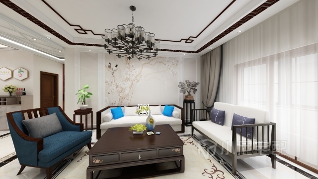 客廳采用的是新中式 沙發(fā)采用的是實(shí)木休閑沙發(fā) 松軟舒適 并沒有選用純實(shí)木的紅木沙發(fā) 紅木沙發(fā)分量重不易打掃 而且很容易磕碰到身體