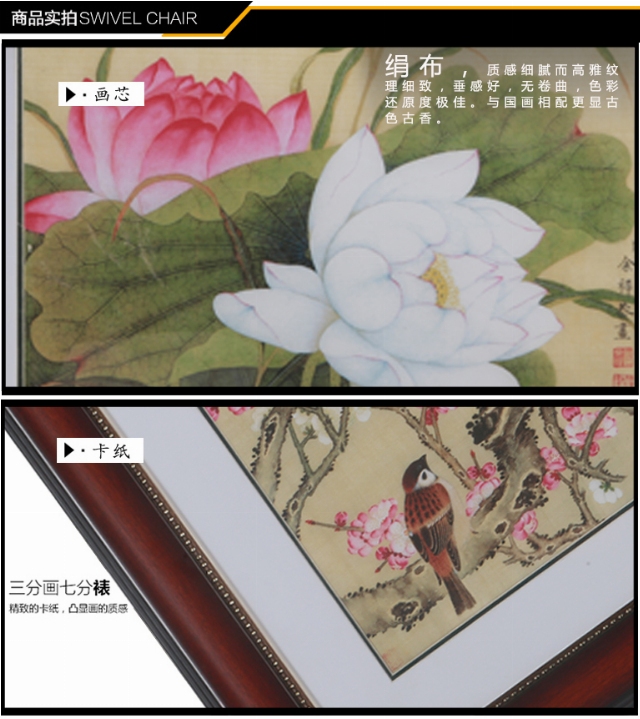 樹脂畫框,仿實(shí)木紋理,并塑有優(yōu)美的弧線,拼接嚴(yán)密自然,內(nèi)邊配金色花式線條,更顯品位。