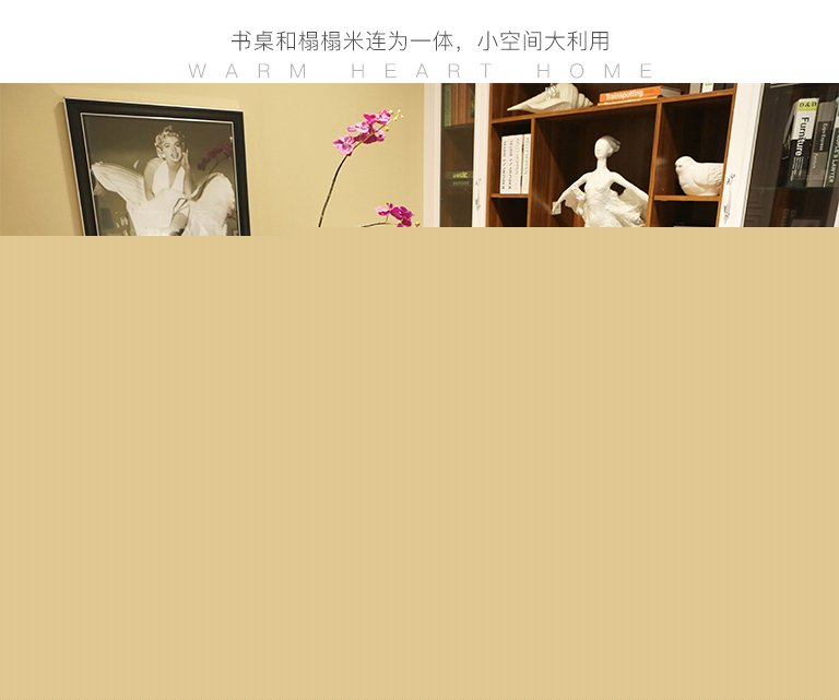 | 細(xì)節(jié)描述 | 這個(gè)房間功能十分強(qiáng)大,利用榻榻米做到了臥室兼書房的妙用,一室多用。柜體到頂不但美觀而且實(shí)用,兩側(cè)的書柜完美的區(qū)分休閑區(qū)和學(xué)習(xí)區(qū),書桌和榻榻米連為一體,小空間大利用。 |