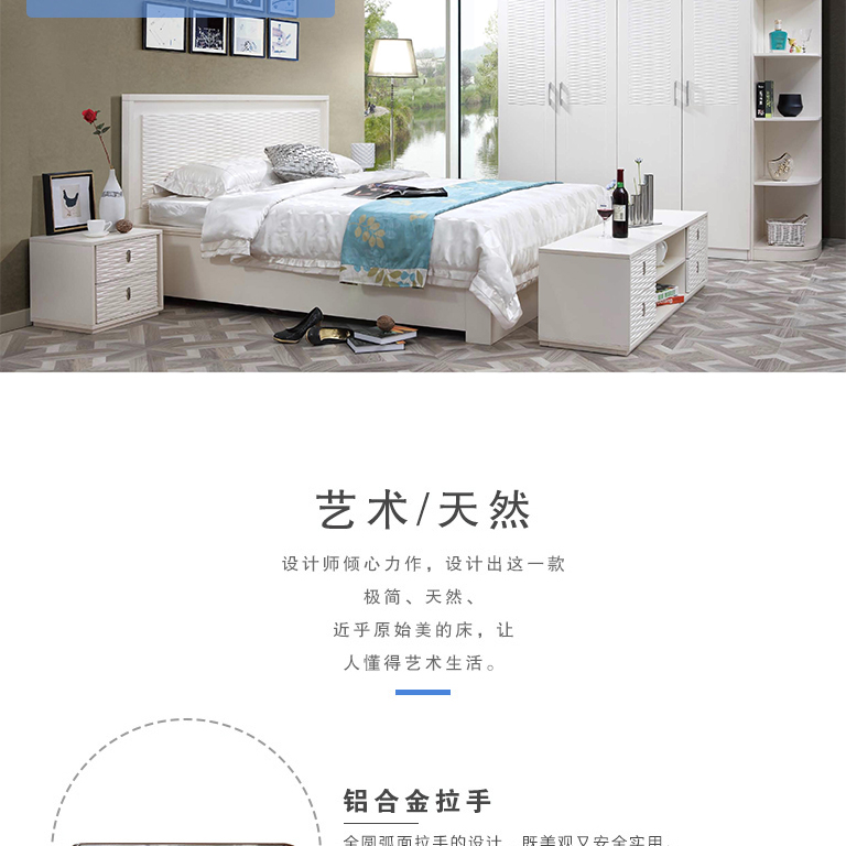 | 規(guī)格 | 衣柜:2200×580×2250mm、床頭柜:472×400×443mm、軟床:2100×1962×1116mm、床墊:1800×2000×120mm、臥房電視柜:1700×400×443mm |