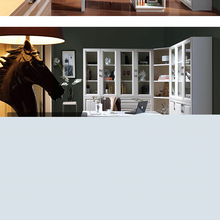 | 細(xì)節(jié)描述 | 展示主人的收藏藝術(shù)。通過局部鏤空封閉,在視覺上更具有變化性,營造出精致高雅的書房氛圍。 |