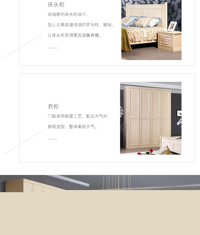 | 產(chǎn)品特點(diǎn) | 此臥室從整體上看它是一個(gè)集優(yōu)雅恬靜,懷舊古典、英倫風(fēng)與中國(guó)風(fēng)韻相結(jié)合的家居環(huán)境。 |