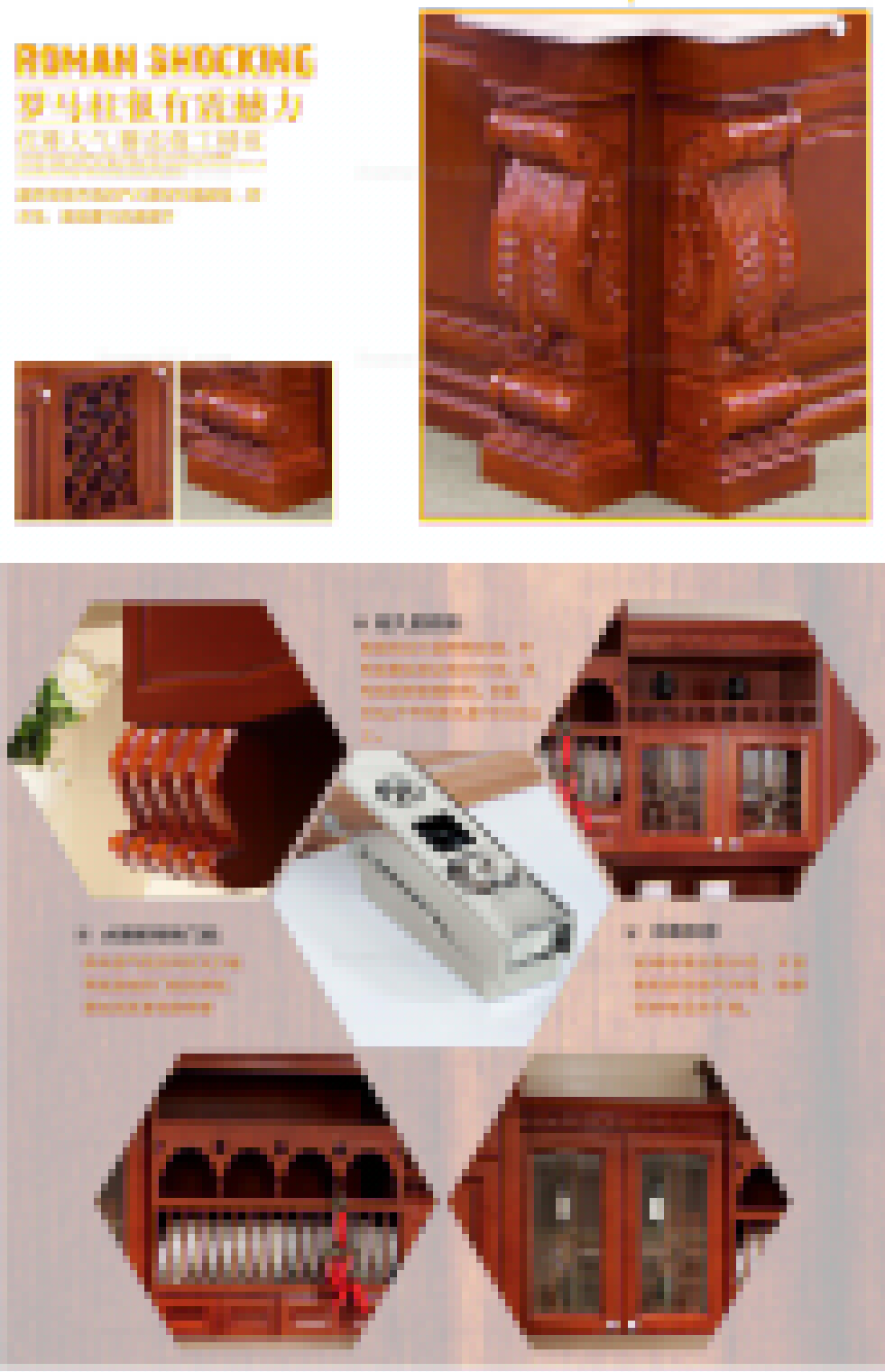 滿目的櫻紅、動人的紋理、仿古的造型、深厚的底蘊,使皇室家族的高雅與高貴體現(xiàn)的淋漓盡致; 大氣沉穩(wěn)的設(shè)計與精選的天然材料相得益彰,造就了如此完美的藝術(shù)作品。