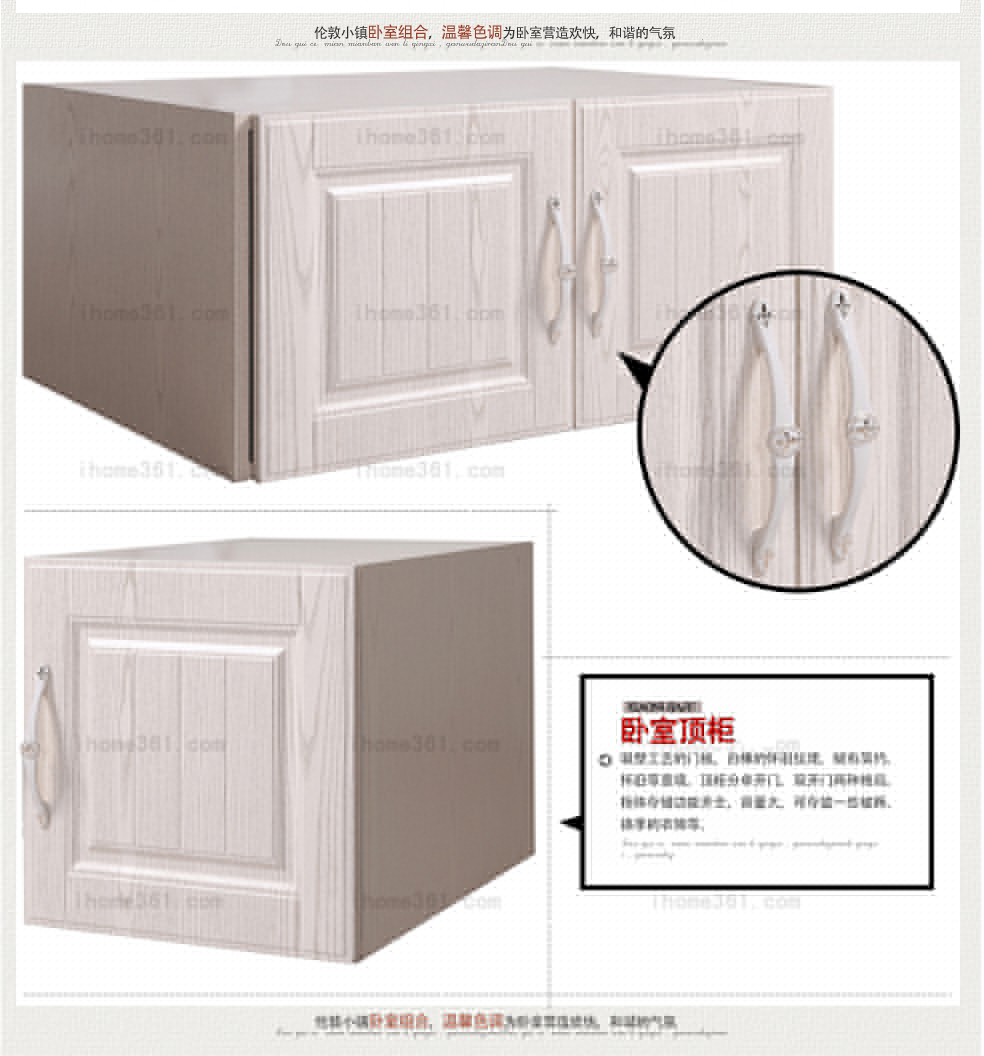 | 細(xì)節(jié)描述 | 床的床頭采用優(yōu)質(zhì)珍珠粉皮,質(zhì)感細(xì)膩,柔然舒服,環(huán)保不變形;床頭柜分兩種,雙屜、上空格下抽屜,使床頭柜儲(chǔ)存多樣;床尾柜體分區(qū)合理,配上古典懷舊的白橡紋理,更顯時(shí)尚感;妝臺(tái)精致淡雅,加上白橡紋理,賦有簡(jiǎn)約、古典的造型;妝凳以秀氣的形象與妝臺(tái)相搭配,使他們流露出不俗的氣質(zhì);衣柜則融合了西方的古典風(fēng)格和東方的現(xiàn)代神韻,儲(chǔ)存功能齊全、分區(qū)明確。 |